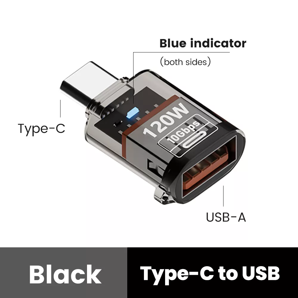Experience seamless connectivity and high-speed charging with this versatile 120W USB 3.2 to Type C Adapter. Designed for modern devices, this compact adapter allows you to quickly charge your iPhone 15, 16, Samsung devices, laptops, and PCs with ease. Its OTG functionality supports fast data transmission, making it perfect for transferring files and charging devices without delays. With a sleek, durable build and advanced technology, this adapter is the essential tool for anyone on the go.