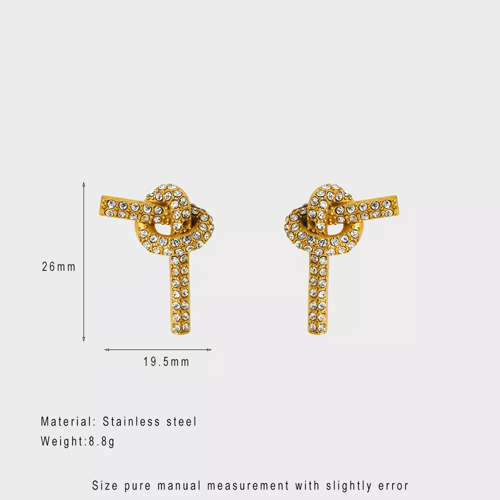 These earrings are more than just a piece of jewelry—they’re a symbol of timeless beauty. The knot design is not only trendy but also meaningful, representing unity and strength. Perfect for the modern woman, they blend classic elegance with a contemporary edge. The addition of rhinestones gives these earrings a glamorous touch, making them the perfect accessory to elevate any outfit, whether you’re attending a special event or enjoying a casual day out.