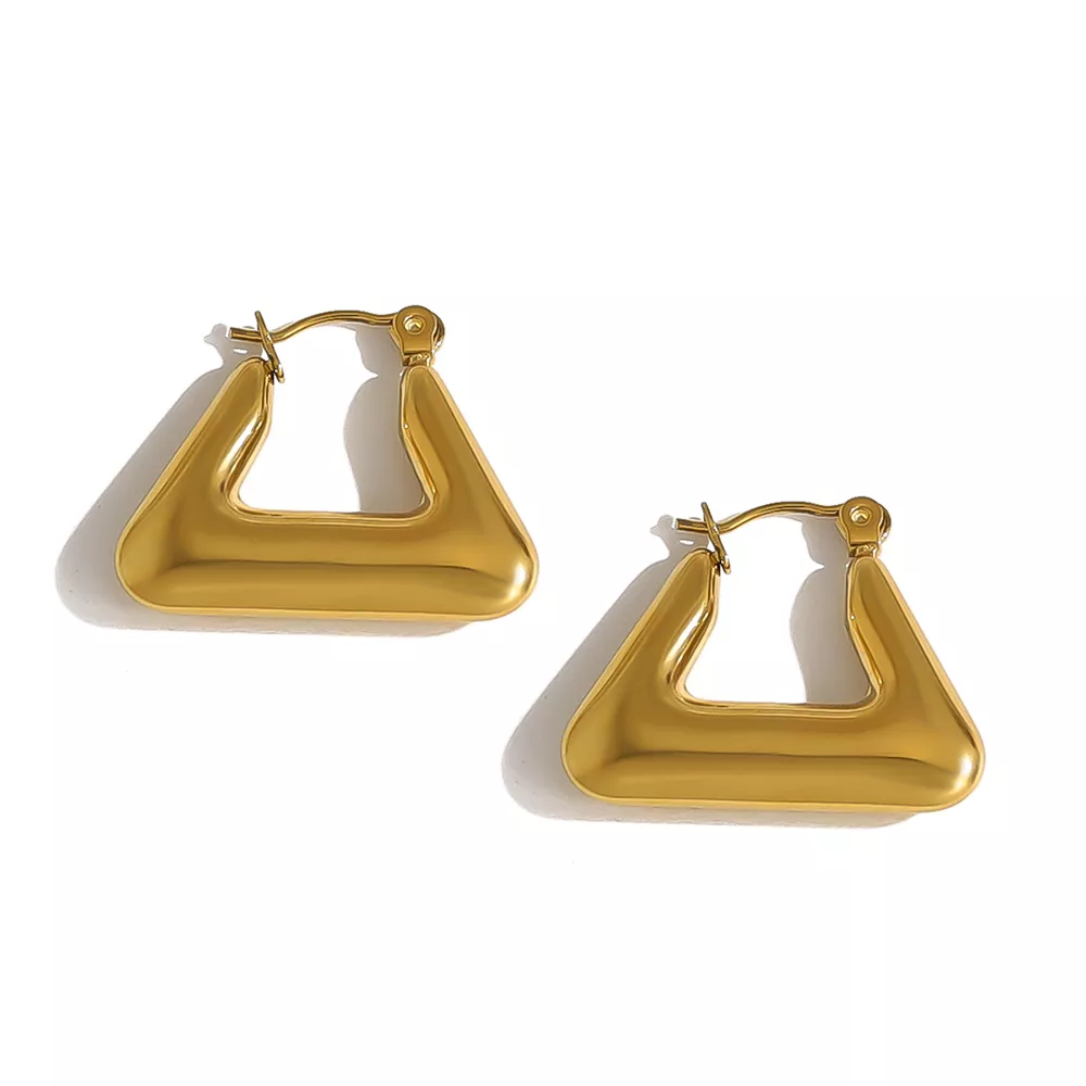 Crafted from premium 316L stainless steel, these earrings are not only beautiful but also durable, ensuring they last through all your adventures. Their waterproof feature allows you to wear them confidently throughout the day, no matter the weather. With their geometric triangle shape and 18K gold plating, these earrings are both timeless and on-trend, effortlessly complementing any wardrobe.