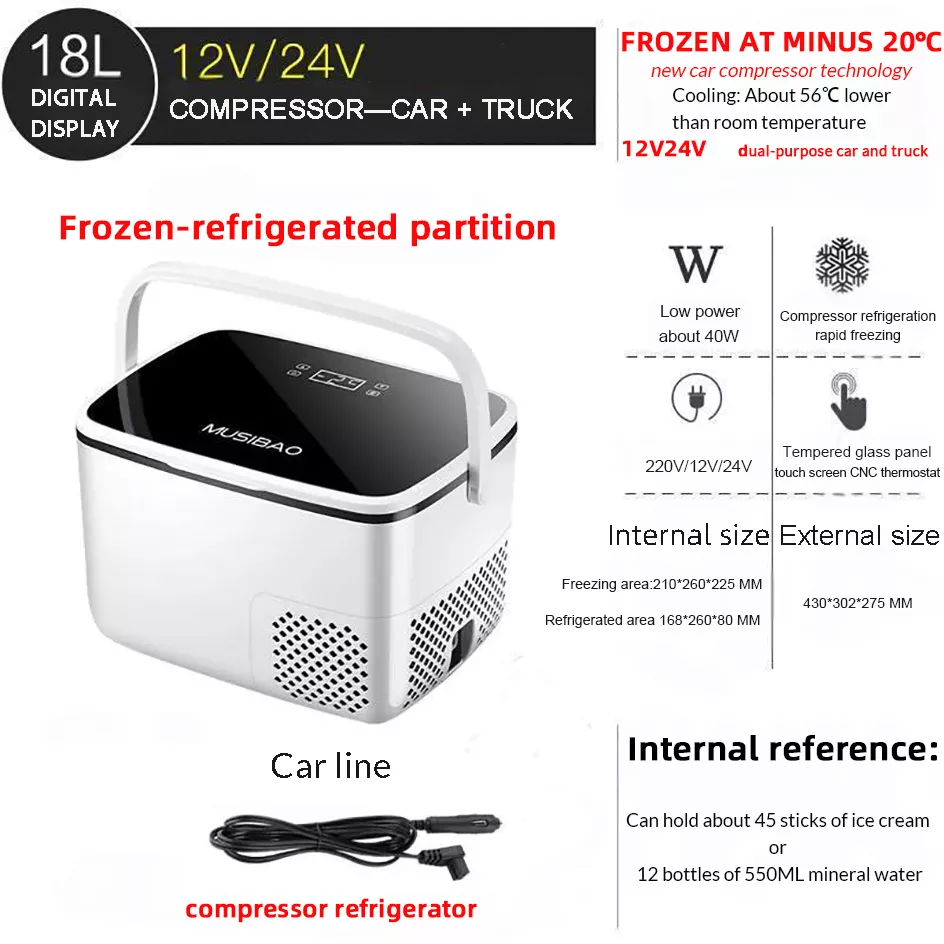 18L Car Refrigerator -20°C Portable Mini Freezer for Cars & Home Use