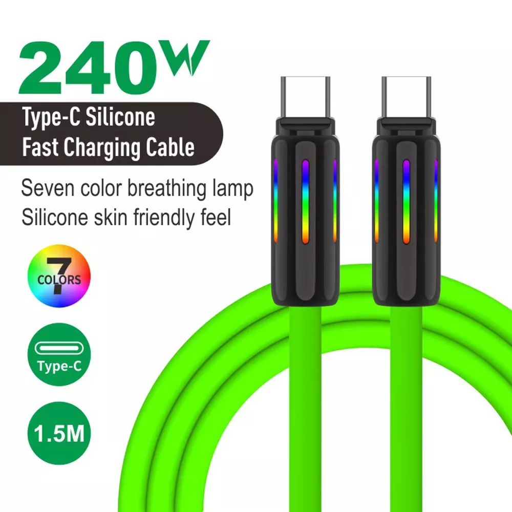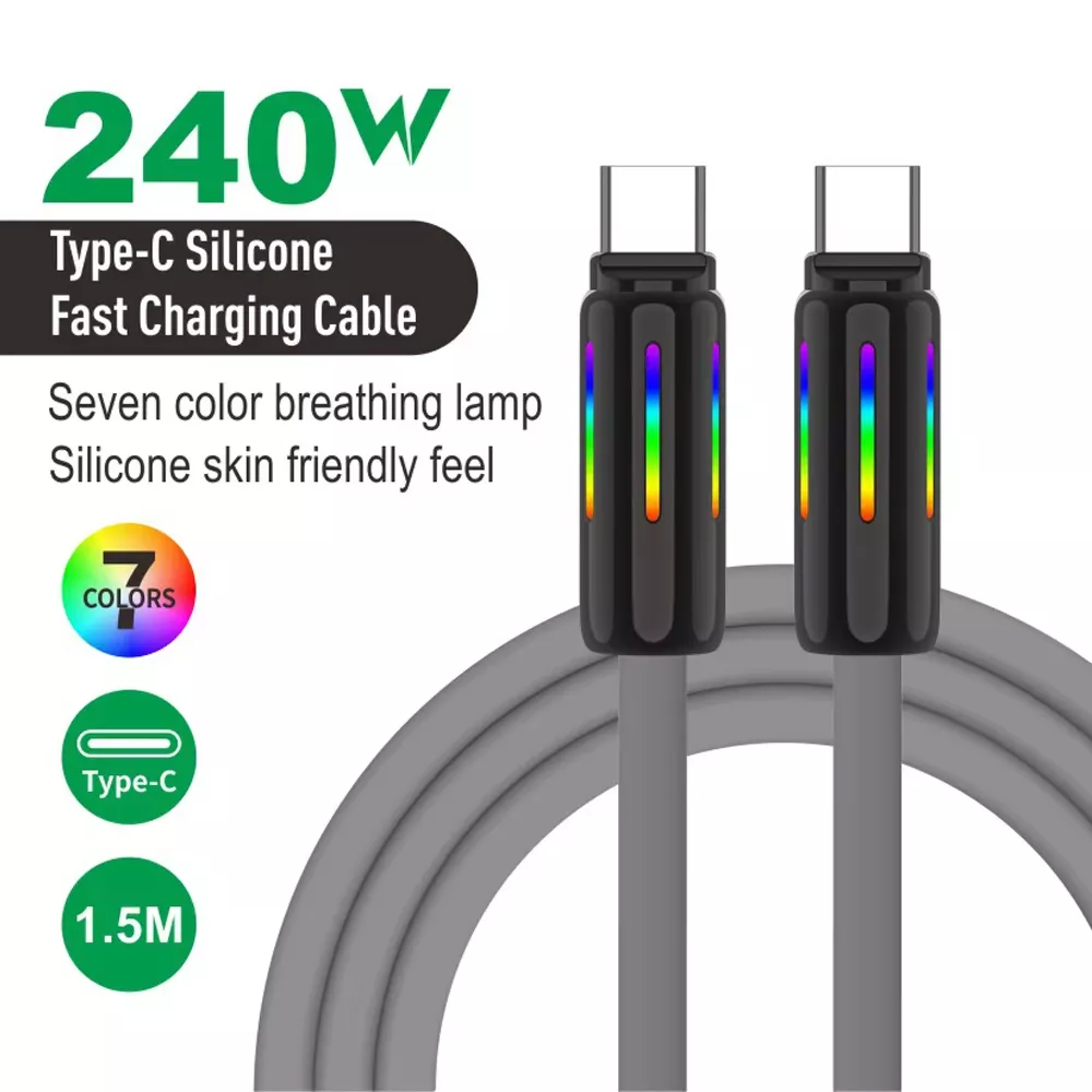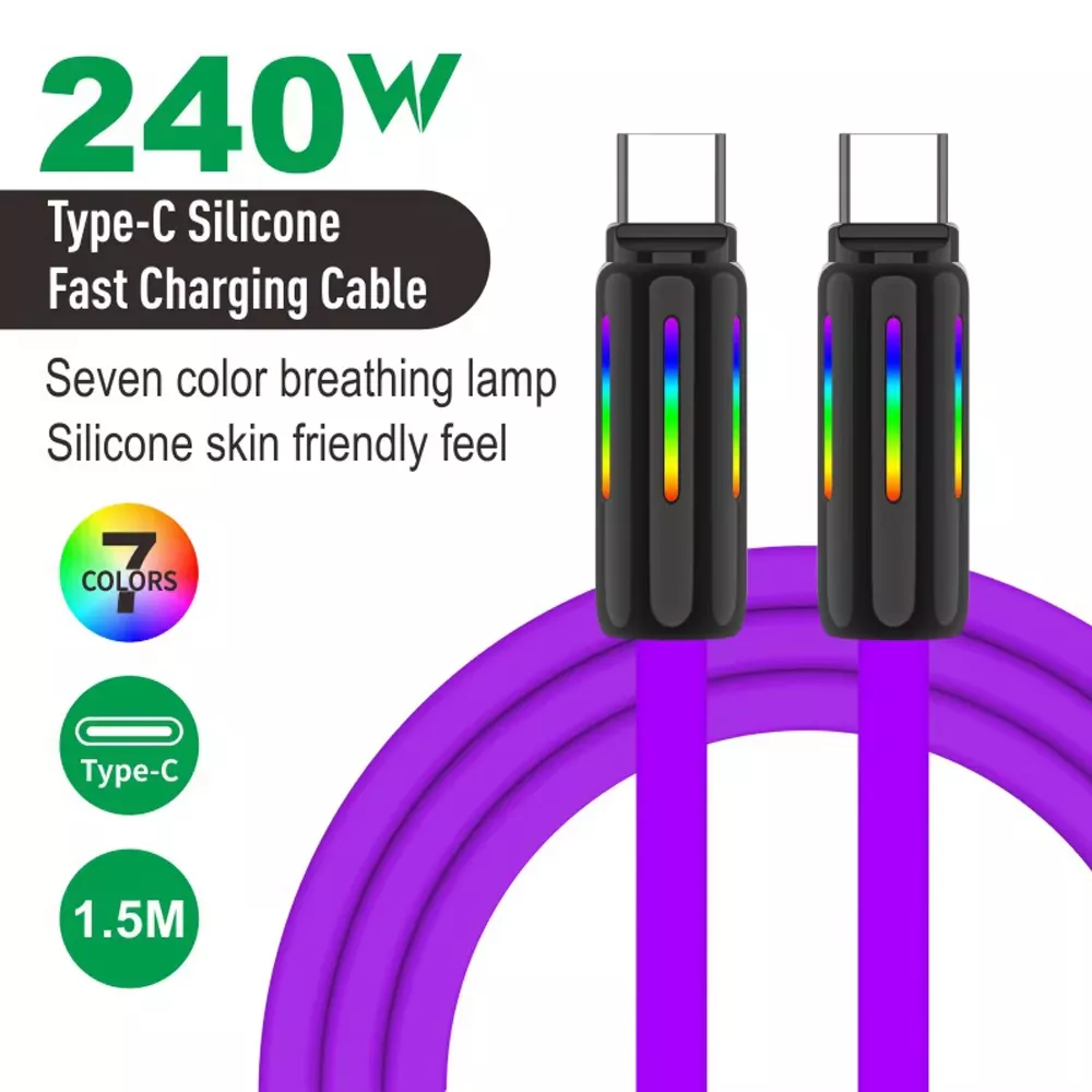 What makes this charging cable special is its perfect balance of style, functionality, and durability. It’s not just a tool for charging; it’s a way to elevate your tech setup. The vibrant RGB breathing light adds personality, while the high-speed charging capabilities ensure your devices power up quickly and efficiently. With the ability to handle up to 240W of power and transfer data at lightning speed, this cable is perfect for users who need both speed and reliability.