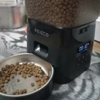 i'm so happy with this automatic pet feeder. the stainless steel bowl is sturdy and easy to clean. setting up the feeding schedule was simple, and it works flawlessly. my pet gets fed on time, and i don’t have to worry about rushing home to feed them. the portion control is spot on. it’s a great investment for pet owners.