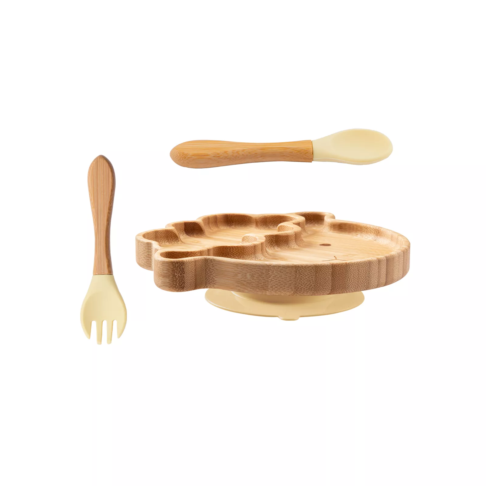 Perfectly sized for little hands, the included plate, spoon, and fork are designed to help babies eat independently. The cute animal shapes not only engage your child but also encourage them to eat more, turning mealtime into a fun, interactive experience. The non-slip base keeps the plate in place, reducing the mess and making feeding easier for parents, while the eco-friendly bamboo material is both durable and lightweight. The silicone cup is soft and safe for babies to hold and drink from, offering extra comfort during meals.