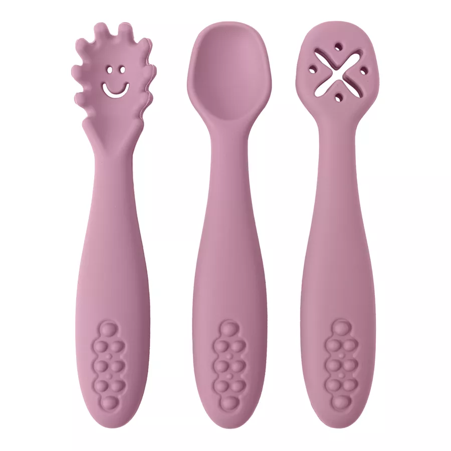 Crafted from high-quality, BPA-free silicone, this set of three utensils ensures safety and durability for everyday use. The soft, flexible design helps reduce the risk of injury, making it perfect for babies aged 0-3 years. Whether your baby is just beginning solids or is already getting the hang of using utensils, these spoons will be a staple in their mealtime routine. The tongue pressing design is perfect for encouraging the proper eating techniques while making self-feeding easier and more fun.