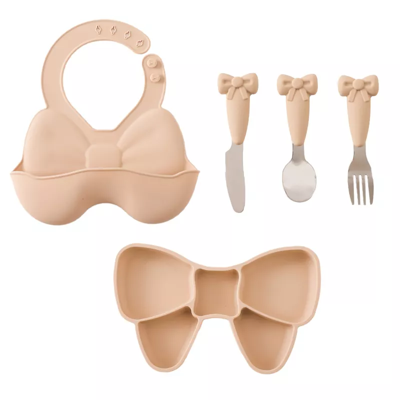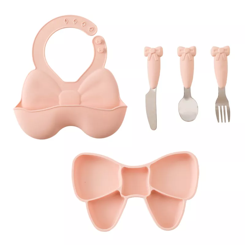 Say goodbye to messy mealtimes and hello to happy feeding with our adorable 5-piece silicone baby dining set! Designed for little ones from 6 months to 6 years, this complete set includes everything you need to make feeding your baby easier, safer, and way more fun.