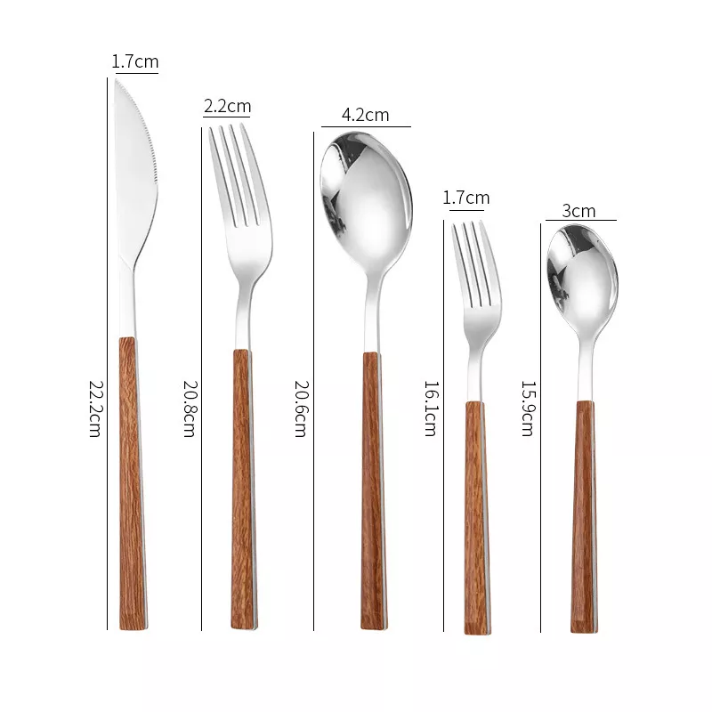 - Wood Grain Handle: The ergonomic wooden grain handle adds a natural and contemporary look to your table setting, ensuring comfort and style.