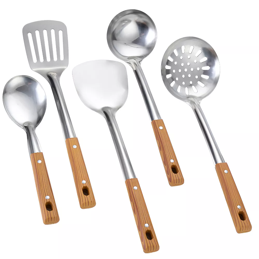 Ready to take your cooking to the next level? Add the 5-Piece Stainless Steel Kitchen Tool Set to your cart now and start cooking like a pro!