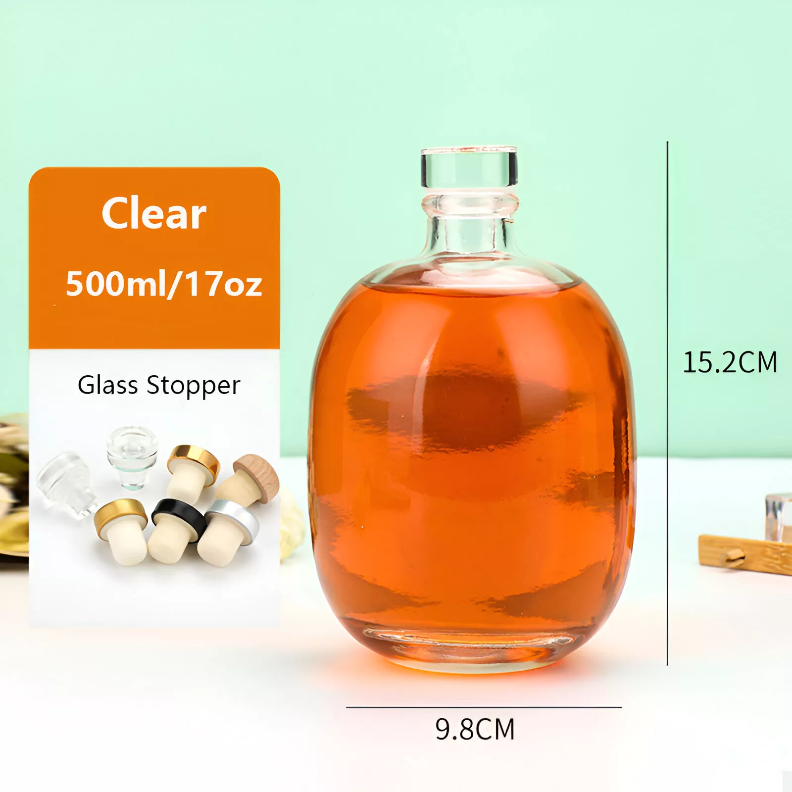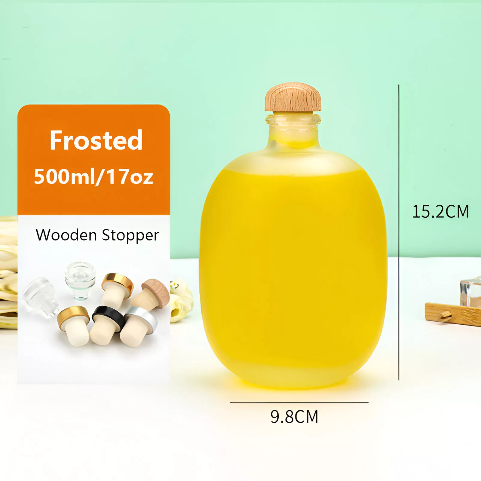What sets this 500ml Glass Spirit Bottle apart is its timeless design and versatility. The combination of clear and frosted glass creates a visually striking effect, making it stand out in any setting. Whether you’re storing your premium whiskey or creating custom blends, this bottle’s size and shape allow you to do so with style. The wooden or glass stopper ensures that your spirits are sealed securely, preserving their quality while enhancing the overall aesthetic. It’s more than just a bottle; it’s a statement piece for those who appreciate the finer things in life.