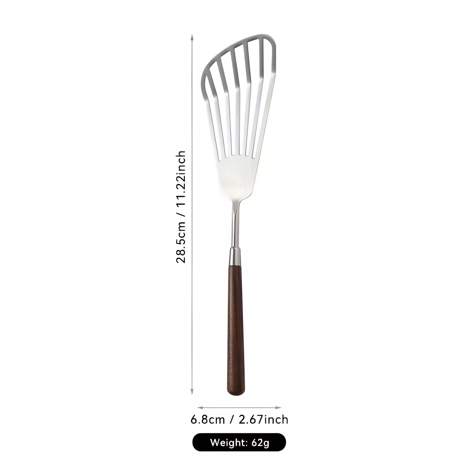 This kitchen utensil set stands out because it combines high-quality materials with an eco-friendly design. The stainless steel construction ensures durability and strength, while the natural wood handles provide a comfortable, ergonomic grip. This balance of functionality and beauty makes the set an essential tool in any kitchen. Not only is it perfect for everyday tasks, but the elegant design also makes it a great gift for home cooks and professional chefs alike.