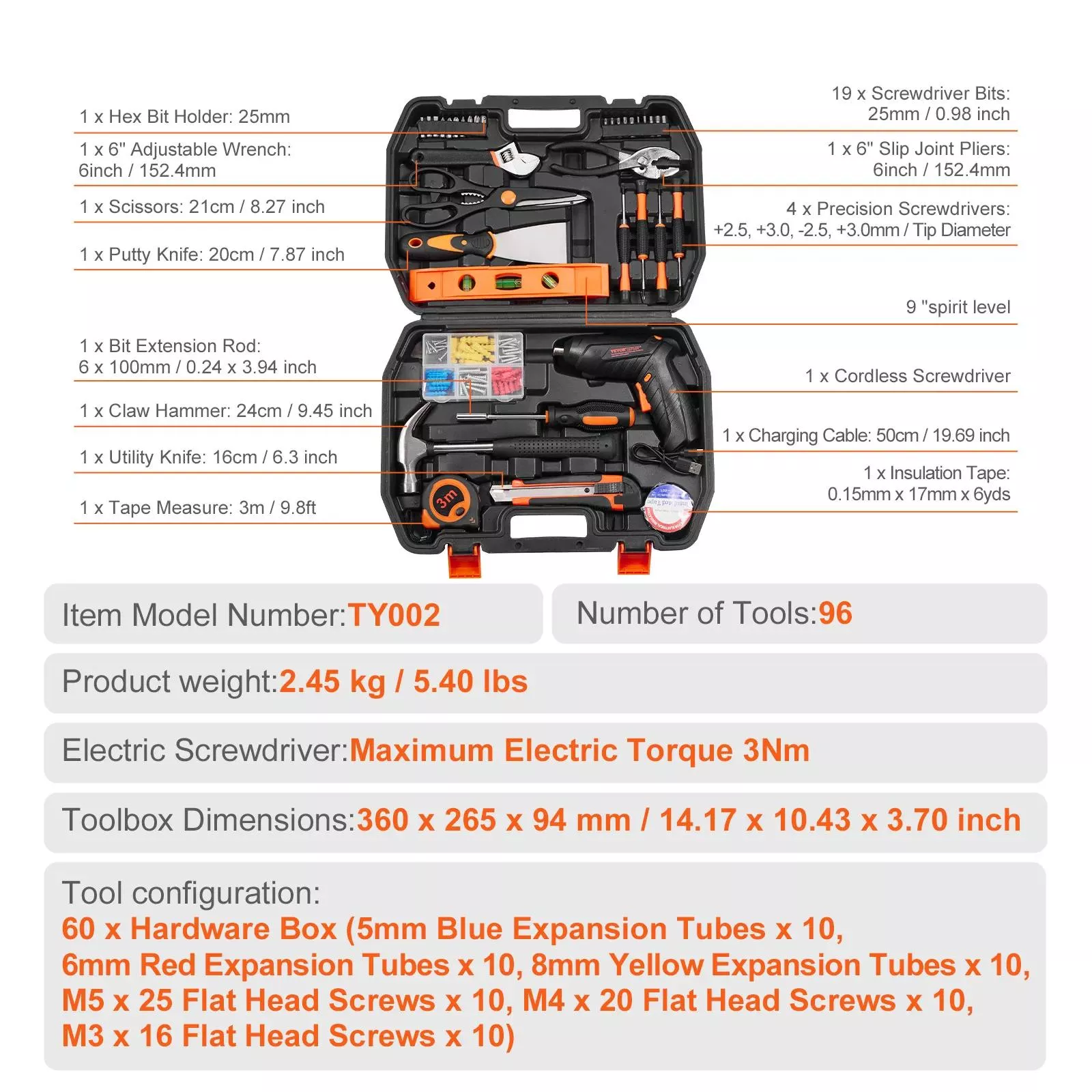 • Efficiency: The wide selection of tools and the powerful electric screwdriver enable faster and more efficient work, saving you time on every project.