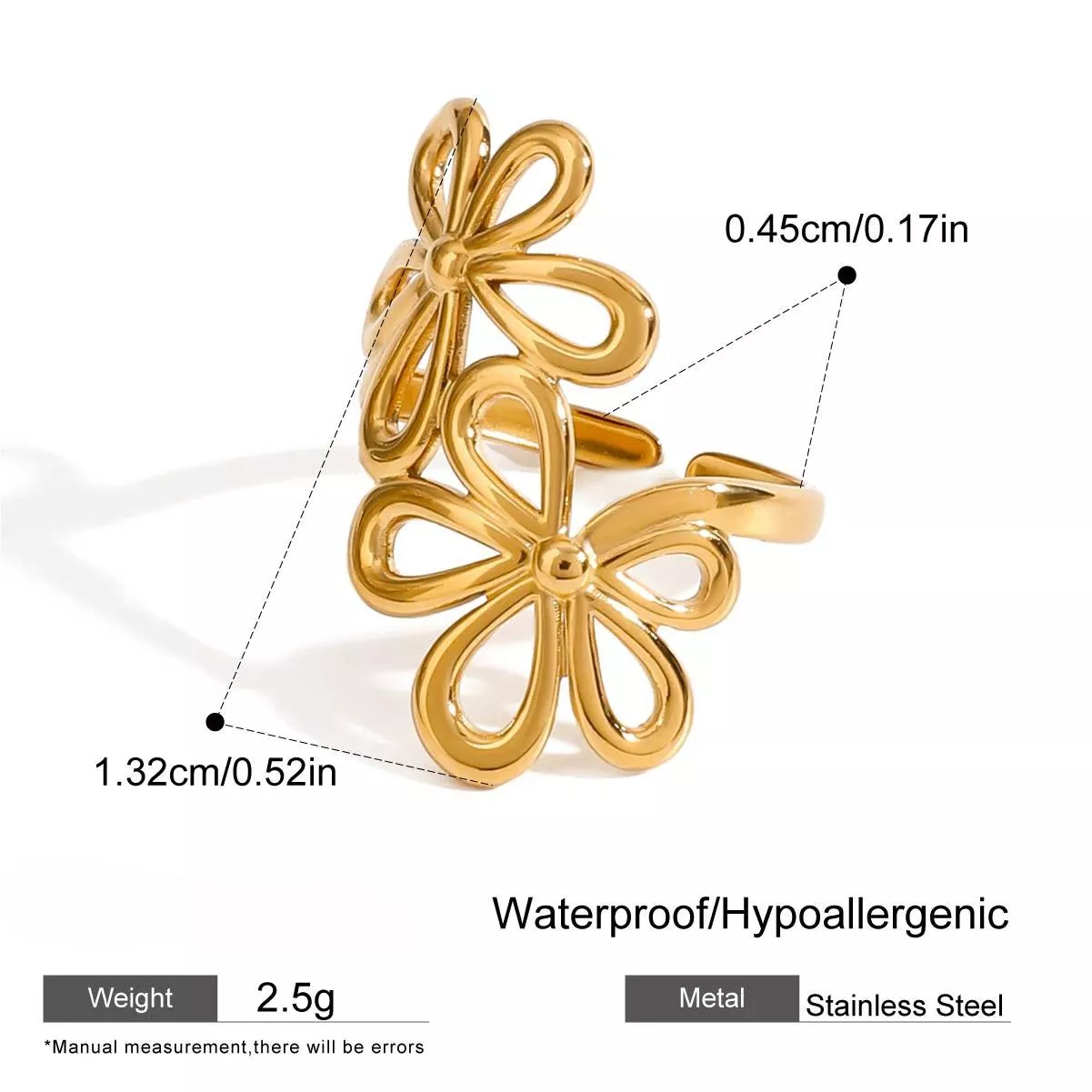 Adjustable Boho Flower Ring – 18K Gold Plated Stainless Steel