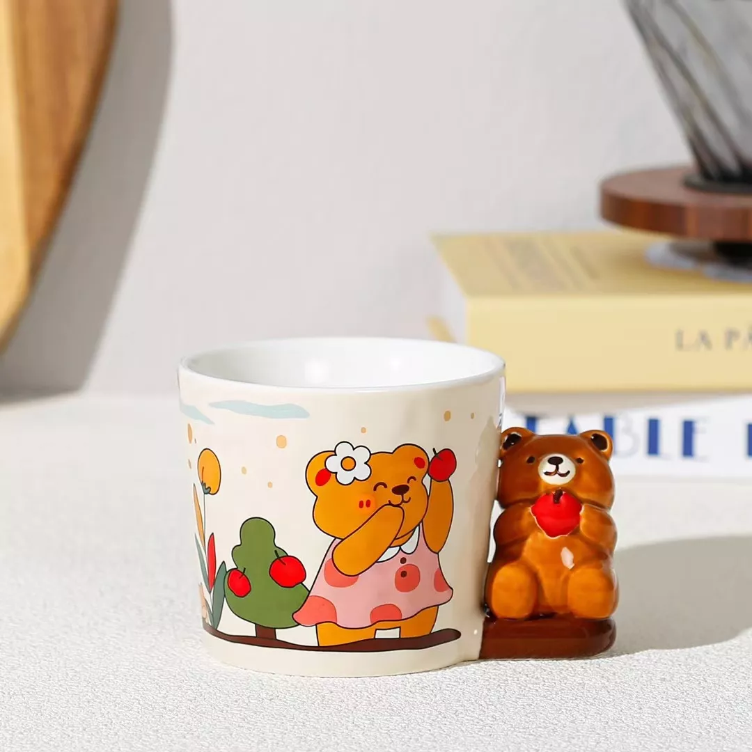 Bring a little joy to your morning routine with this delightful 420ML ceramic mug, featuring a charming three-dimensional bear and playful apple design. Whether you’re sipping on a cozy cappuccino or enjoying a refreshing cup of afternoon tea, this cartoon-style animal mug adds fun and character to every sip. Its brief, modern style and handgrip shape make it as functional as it is adorable, while the eco-friendly ceramic ensures a pure taste in every drink.