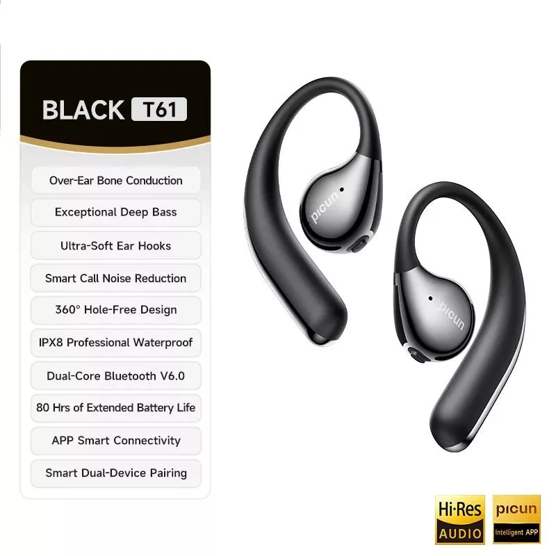 Enjoy your music, podcasts, and calls with a new level of freedom and clarity. These Bone Conduction Bluetooth Headphones are designed for those who want to stay aware of their surroundings while still enjoying high-fidelity sound. With an open-ear design and flexible earhooks, they provide all-day comfort, even during intense activities like running, swimming, or climbing. Built with cutting-edge Bluetooth 6.0, they ensure seamless connectivity and ultra-clear audio performance — no cords, no limits.