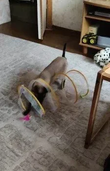 Initially intended for our playful kitten Fiona, this toy ended up being dominated by our more subdued cat, Moosh. Despite Moosh's usual indifference to toys, this one brought out his playful side. We were so impressed that we bought another for Fiona.