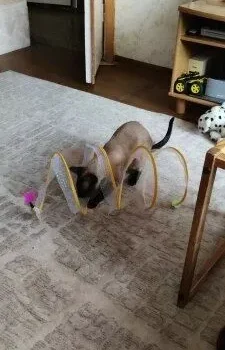 This cat adventure tunnel has been a hit with my cats. they absolutely love running through it and playing hide and seek. the material is sturdy and the crinkly texture adds an extra element of fun. it was easy to set up and is lightweight enough to move around the house. the tunnel also folds up nicely when not in use, making it easy to store. since we got this tunnel, my cats have been more active and entertained. it’s great to see them enjoying themselves so much. the tunnel is spacious enough for them to play comfortably and they love the different entrances. this has been a great addition to their toys and has provided endless hours of fun. i highly recommend this tunnel to other cat owners looking for a durable and entertaining toy for their furry friends.