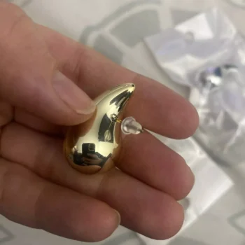 These gold teardrop earrings are the ultimate imitations! They have a substantial weight that lends them an authentic feel. Once securely fastened, they stay in place without much movement. These earrings are both stunning and lightweight, garnering many compliments and inquiries from friends who couldn't find them in stores—I highly recommend them!