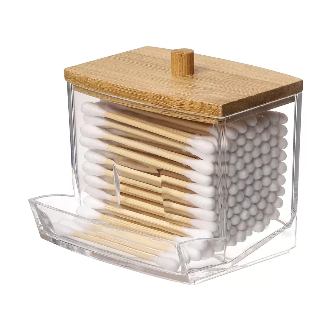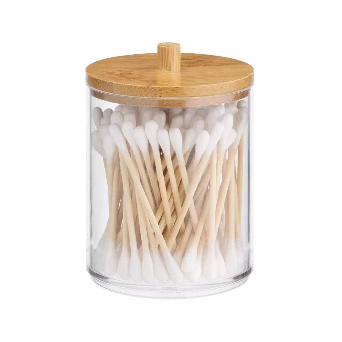 Say goodbye to messy counters and hello to simplicity and charm. Add this Clear Cotton Swab Holder with Bamboo Lid to your bathroom setup today and enjoy a more organized, serene space every day.