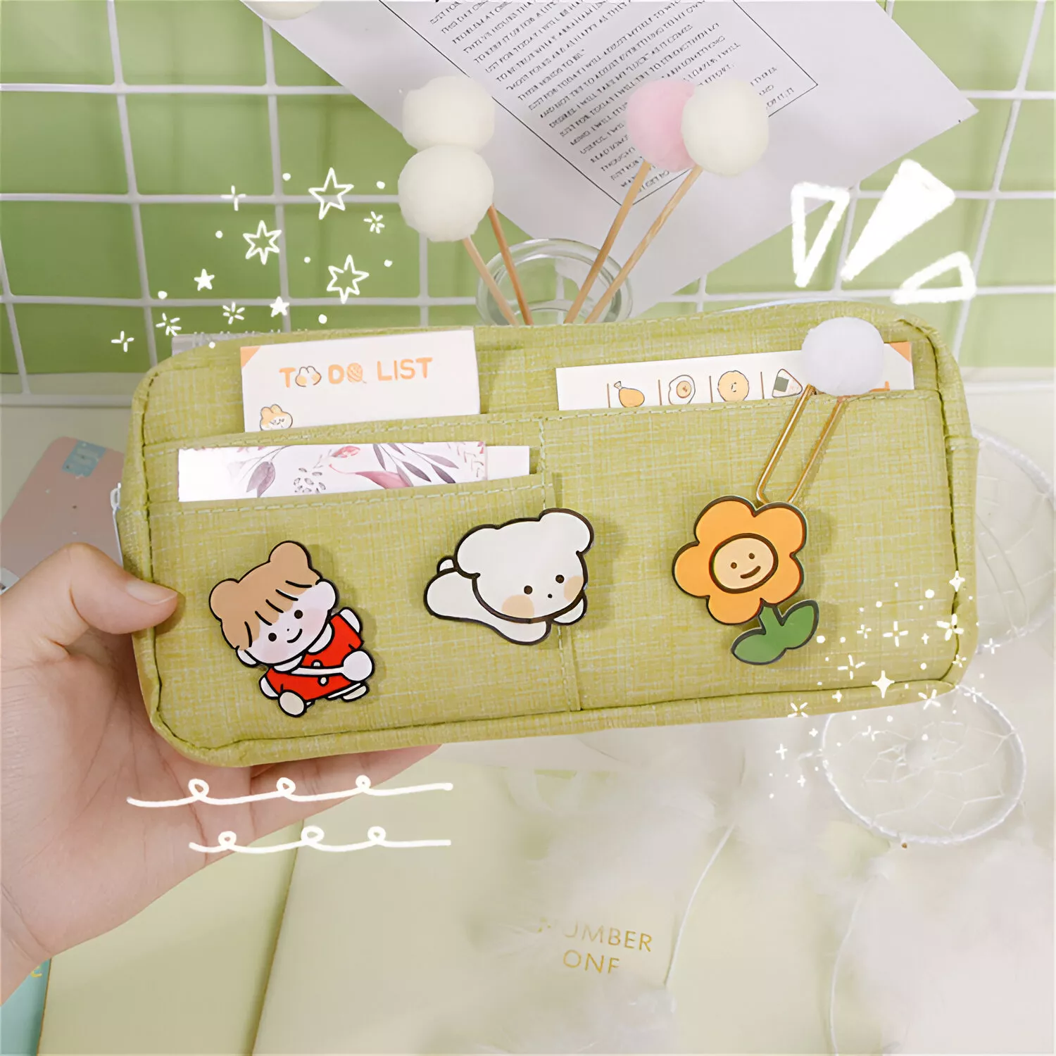 Bring a burst of charm and functionality to your desk with this adorable Cute Pencil Case! Designed with the modern girl in mind, this pencil case is perfect for keeping all your pens, pencils, and other stationery essentials organized. Its canvas material ensures durability while maintaining a lightweight feel, and the random brooch decoration adds a fun and personalized touch. Whether you’re heading to school, the office, or simply need a cute way to organize your things, this pencil case has you covered!