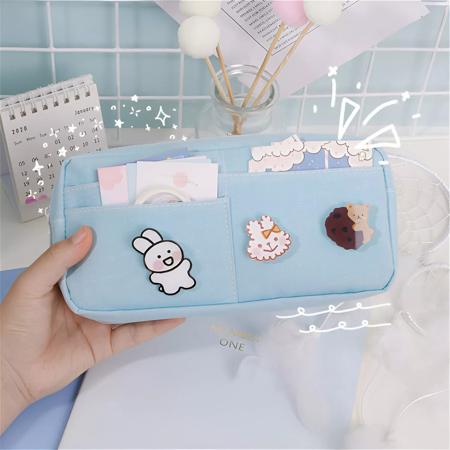 This Cute Pencil Case is the perfect blend of style and practicality. Its fun design is sure to stand out, making it a must-have for anyone who loves quirky accessories. The random brooch on the front adds a pop of personality, making each pencil case unique and special. Whether you’re using it for school, at the office, or for personal use, it’s the perfect way to keep your items organized while showing off your playful side. Plus, the durable canvas material ensures that this pencil case will last, so you can enjoy it for years to come!