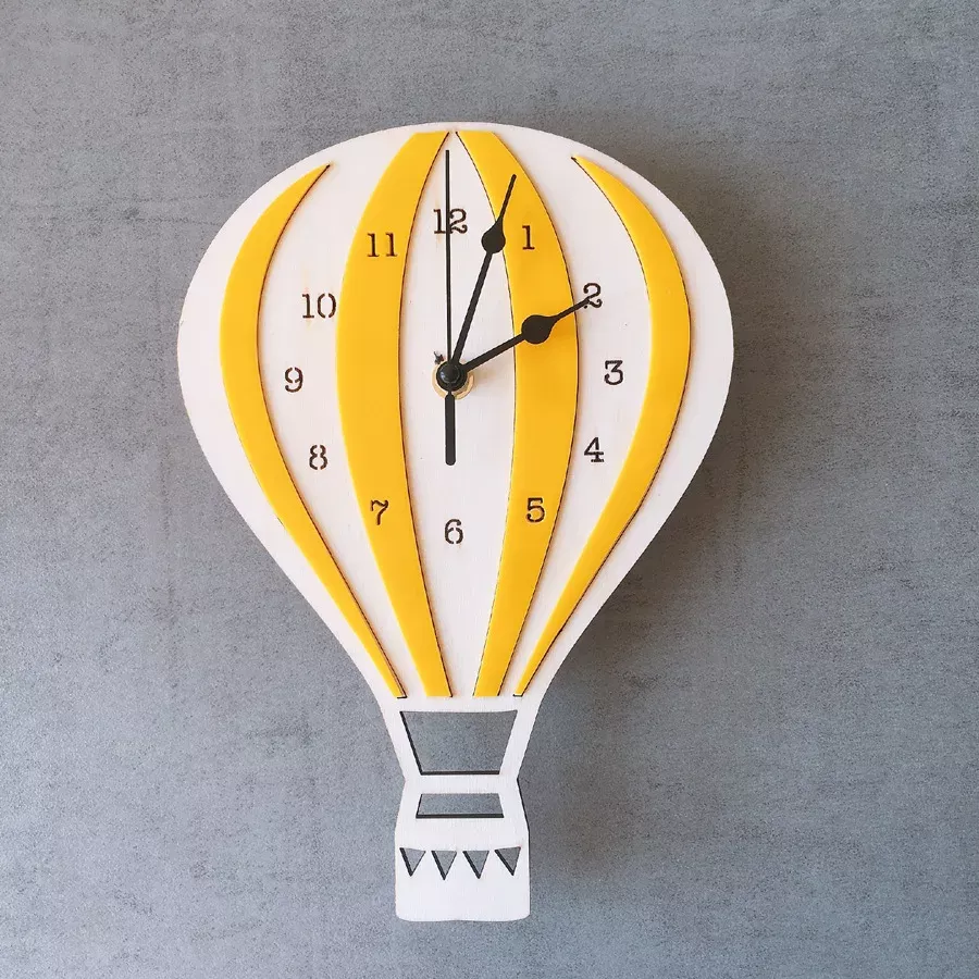 Cute Nordic Style Cartoon Hot Air Balloon Clock for Kids’ Rooms