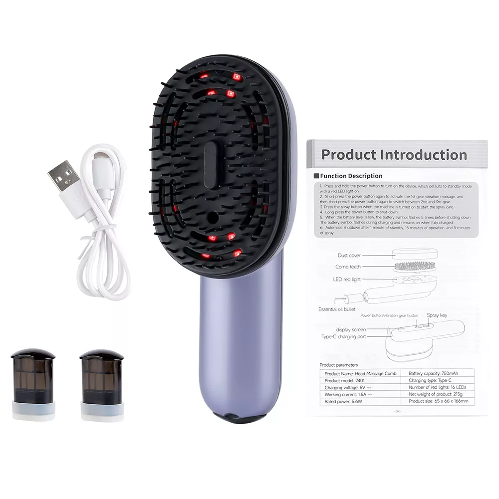 Experience the ultimate hair care upgrade with the Electric Hair Care Spray Comb – a smart fusion of scalp massage, deep nourishment, and gentle grooming in one. Designed to transform your daily routine, this innovative brush not only detangles but also invigorates your scalp with high-frequency vibration and red light therapy, while delivering a fine mist of essential oils directly to your roots.
