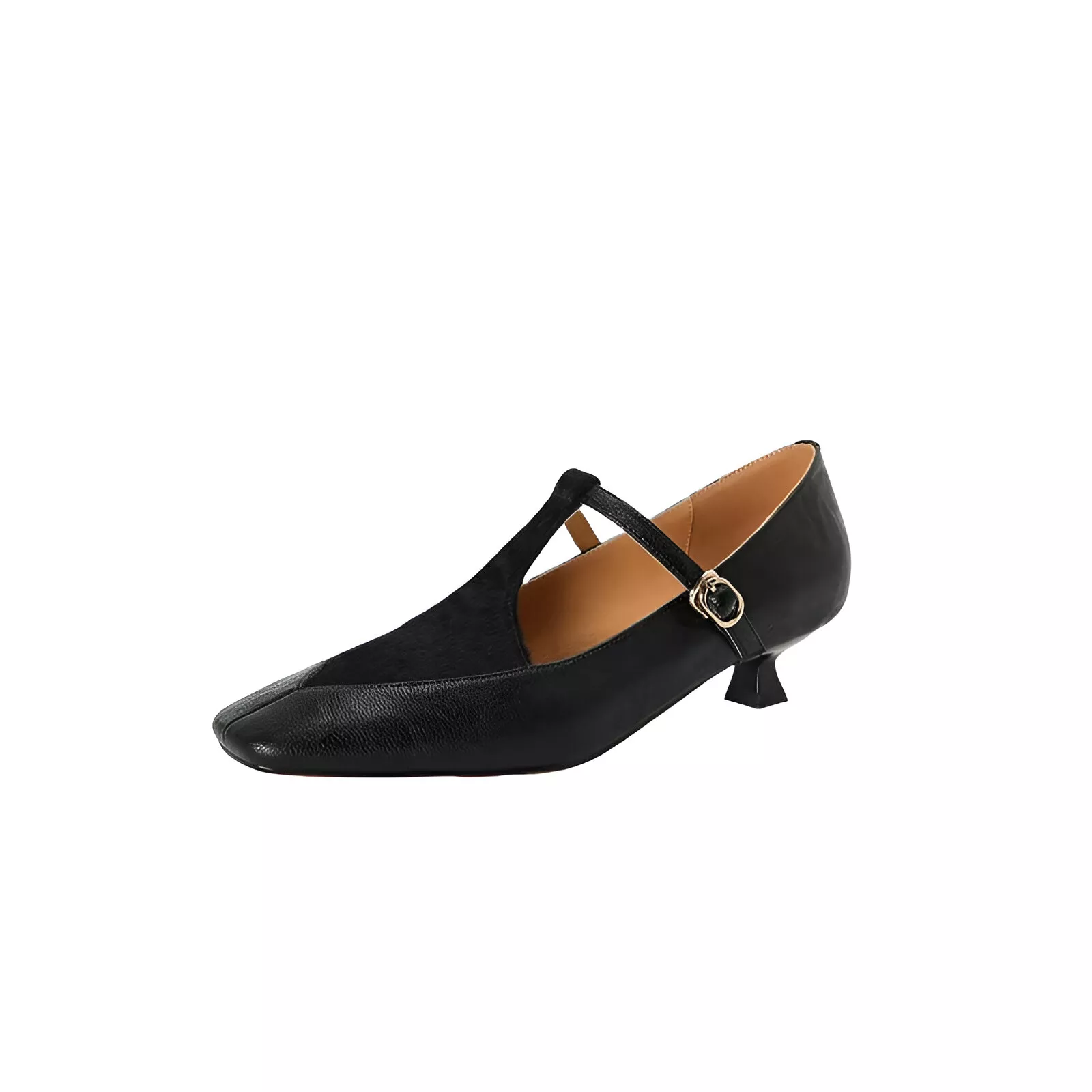 Elegant Square Toe T-Strap Mary Janes – Kitten Heel Leather Pumps for Women