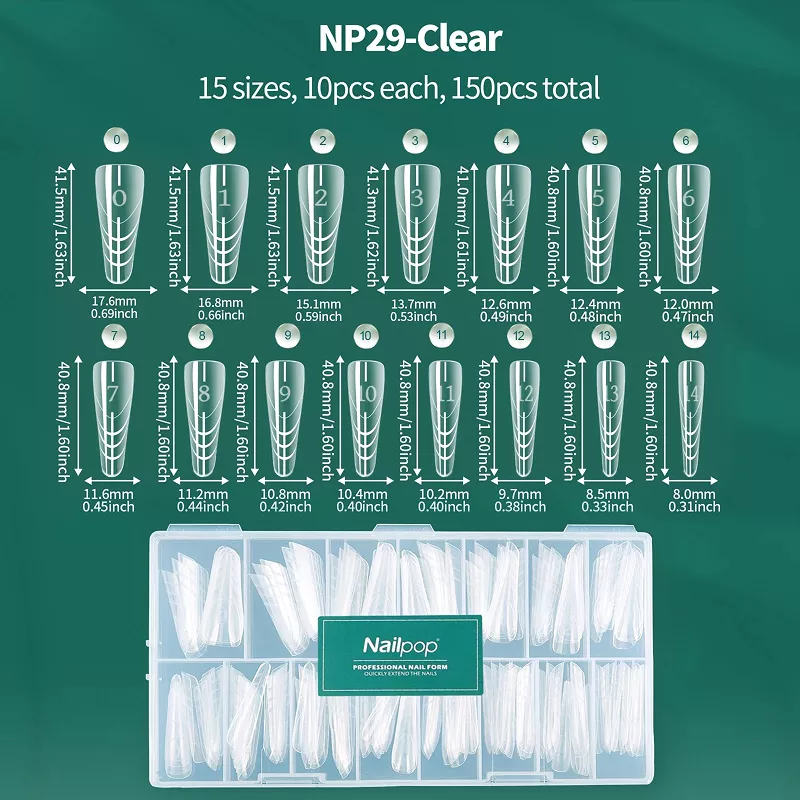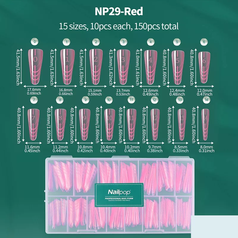 This kit is crafted to deliver perfect results every time with its user-friendly design. Each form comes with a clear scale for easy length control, allowing you to create even, consistent nails. The embedded design ensures a seamless fit to your natural nails, preventing gaps and lifting for a long-lasting finish. The unique smile line design helps you effortlessly create perfect French tips, adding an elegant touch to your nails. The extra-large number marking makes it easy to find the right size, so you can save time and get to work right away!