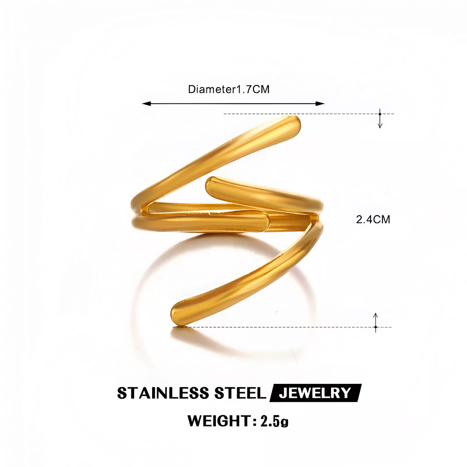 These stainless steel gold-colored rings are more than just accessories; they’re an expression of style. Whether you’re heading to a dinner party or simply want to add a subtle touch of elegance to your everyday wear, this ring stands out without being too flashy. The geometric open design is contemporary yet classic, creating a balance between boldness and simplicity. Plus, the high-quality stainless steel ensures durability and a long-lasting finish, making it a smart choice for anyone looking for a versatile and stylish accessory.