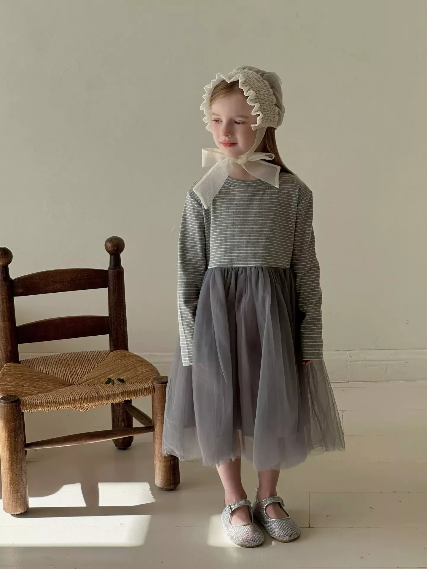 Dress your little one in this adorable long-sleeved dress, perfect for the transitional seasons of spring and autumn. With its sweet patchwork design combining striped fabric and delicate tulle, this dress creates a charming, princess-like look that is sure to turn heads. Whether it’s for daily wear or a special occasion, this dress is the perfect choice for a stylish and comfortable outfit.