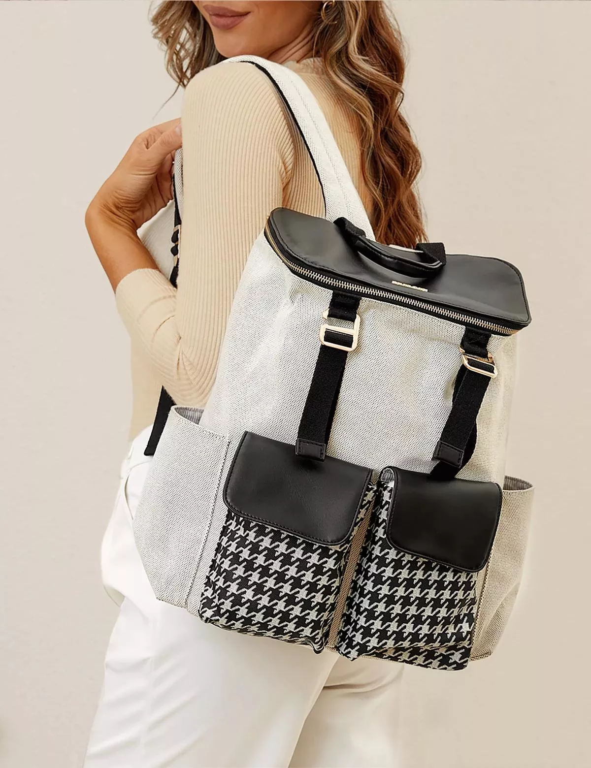 Upgrade your diaper bag game—get the Houndstooth Diaper Backpack and experience what true parenting convenience looks like.
