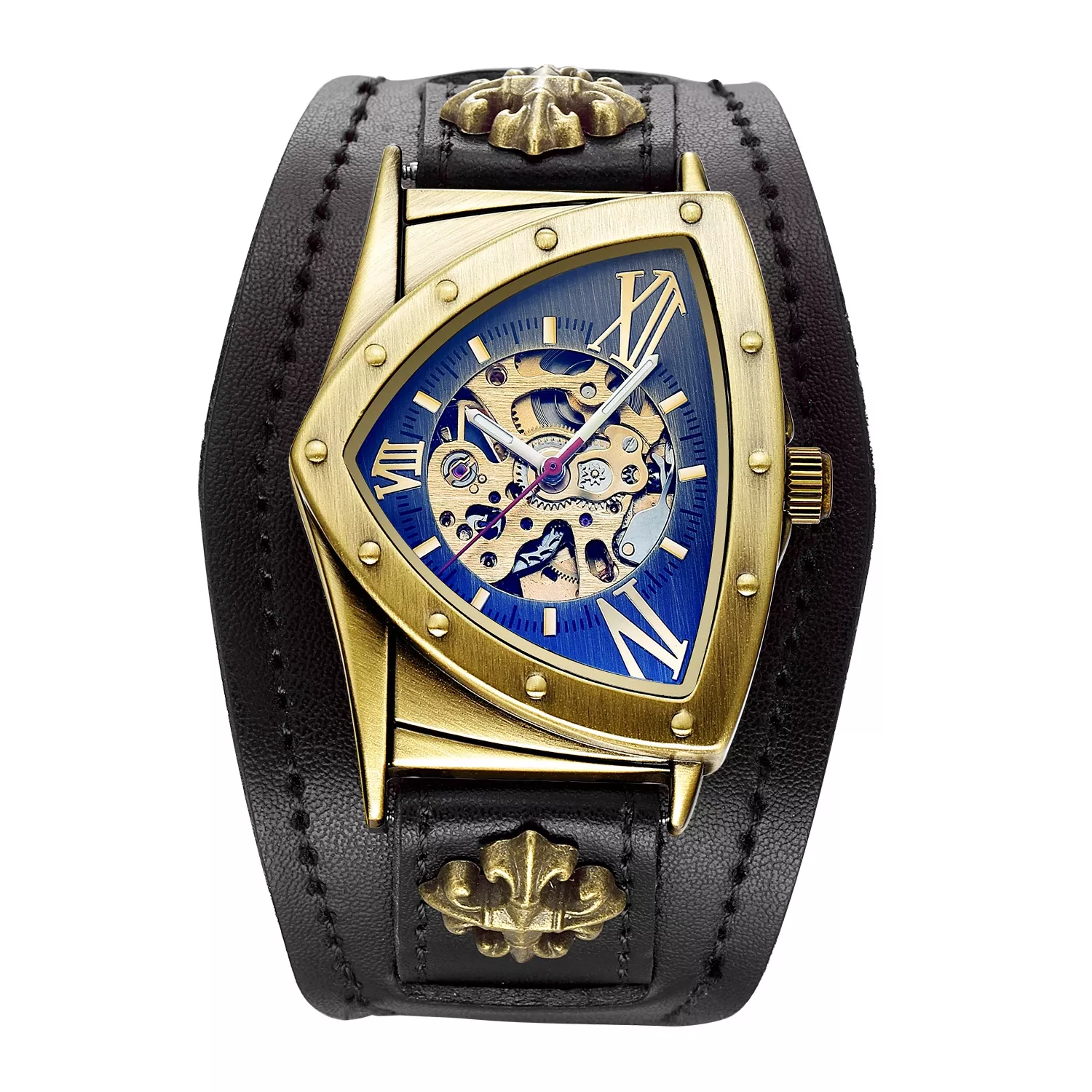 Crafted with a durable stainless steel case and a high-quality automatic self-winding movement, this watch keeps time effortlessly without the need for batteries. The exposed skeleton dial reveals the intricate inner workings, offering a mesmerizing glimpse into the art of watchmaking. A sleek black leather strap completes the look, ensuring both comfort and sophistication.