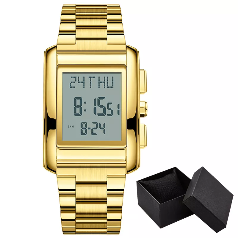This luxury men’s quartz wristwatch isn’t just about telling time—it’s about making a statement. With its stunning black and gold contrast and rectangular design, it captures attention while remaining incredibly versatile. The digital movement gives it a modern touch, while the durable alloy band ensures long-lasting wearability. Perfect for the man who appreciates style, functionality, and precision, this watch transitions effortlessly from work to play. Plus, with 30-meter water resistance, you can wear it with confidence, even in light rain or while washing your hands.