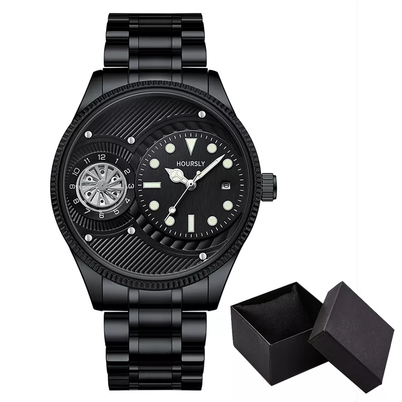 This luxury men’s quartz wristwatch isn’t just a timepiece – it’s a statement. Whether you’re at a business meeting, on a date, or enjoying a weekend outing, this watch is designed to keep up with your lifestyle. Its sleek black and gold tones give it an air of sophistication, while the unique numberless dial makes it stand out from the crowd. The waterproof feature ensures that you can wear it with confidence, without worrying about light exposure to water.