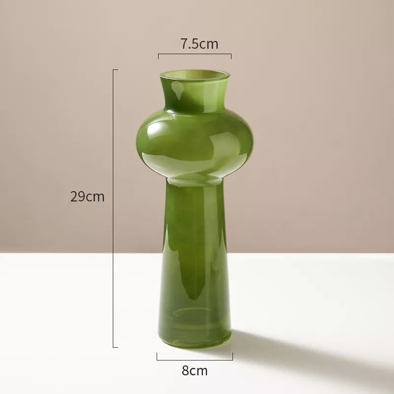 Modern Green Glass Vase for Flowers – Small Hydroponic Tabletop Decor