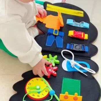 We are so pleased with this busy board. It’s engaging and educational, perfect for our curious toddler. The variety of activities helps with fine motor skills and keeps them entertained for long periods. The materials are safe and durable, which gives us peace of mind. It’s also portable, so we can bring it along on car rides or visits to relatives. This toy has been a great addition to our child’s learning tools.