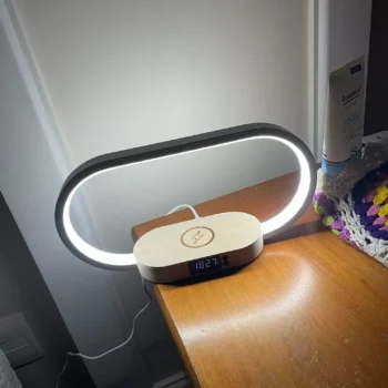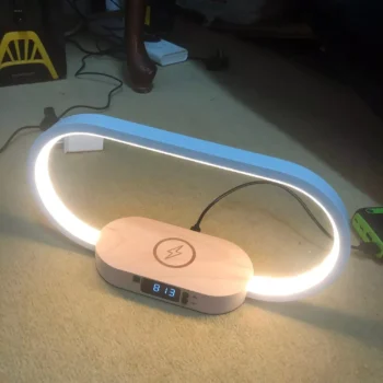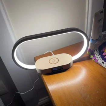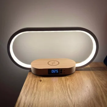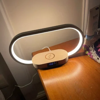 The design of this wireless charging table lamp is perfect for the modern home.The LED light is soft and the brightness is adjusted by just touching the top of the led with three colors of light. Moreover, its wireless charging function is extremely convenient, just place your phone on the base and it will start charging. The clock function is also very useful, the digital display is clear and you can know the time at a glance. Overall, very happy with this product, it simplifies my workspace while adding a modern touch to the interior.