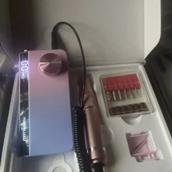 The aesthetic appeal of this pink and light purple nail drill is matched by its functionality, including convenient USB-powered accessories. It's an affordable, simple solution for at-home nail care.