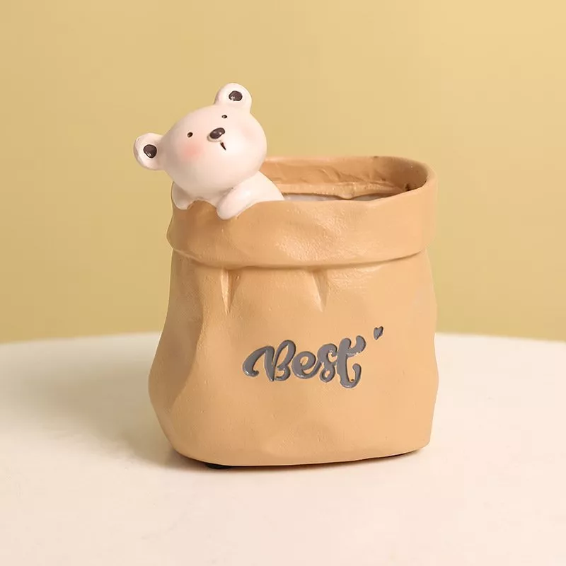 Bring a touch of creativity and charm to your home or office with this Resin Imitation Paper Bag Plant Pot. Designed to look like a classic crumpled paper bag but crafted from high-quality resin, this eye-catching vase is a conversation piece that adds a playful, artistic twist to your décor. Perfectly sized for small succulents, cacti, or bonsai, it also makes a unique holder for office supplies, makeup brushes, or other trinkets.