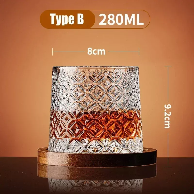 Retro Spinning Whiskey Glass with Bamboo Coaster