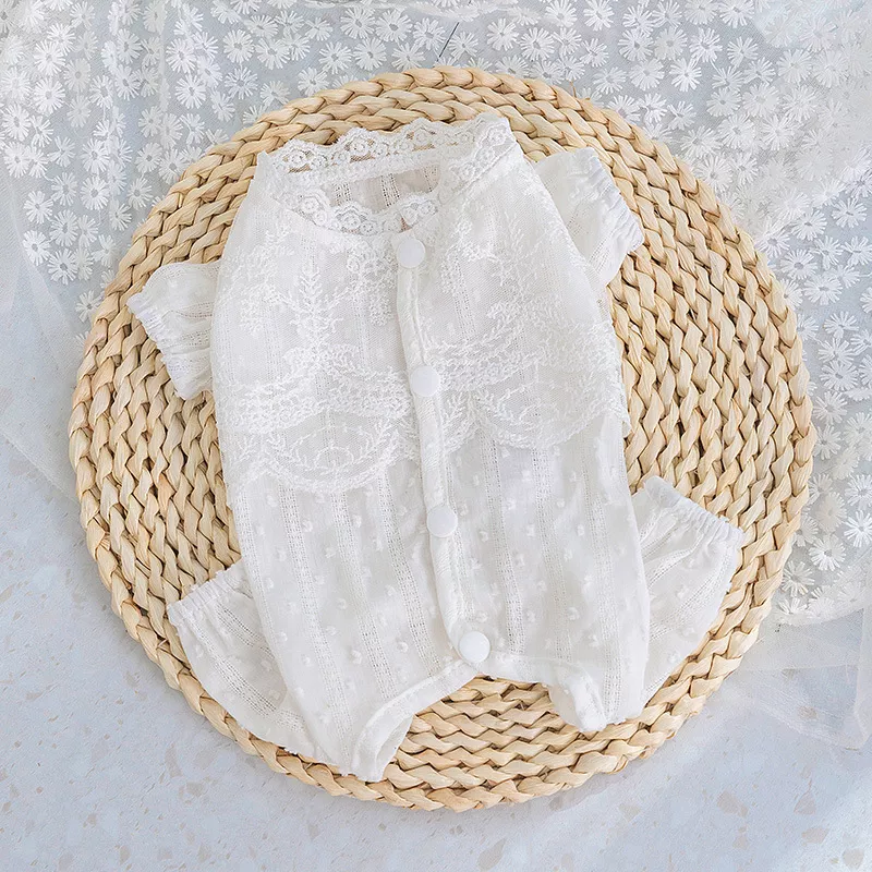 Give your furry friend the gift of comfort and cuteness with these Romantic Lace Summer Dog Pajamas. Designed with a soft, breathable polyester fabric and a charming lace finish, this four-legged outfit is perfect for keeping your pup cozy indoors during warm days and air-conditioned nights. Whether your pup is lounging on the couch or enjoying a quiet afternoon nap, this stylish piece adds a sweet, romantic touch to their daily routine.