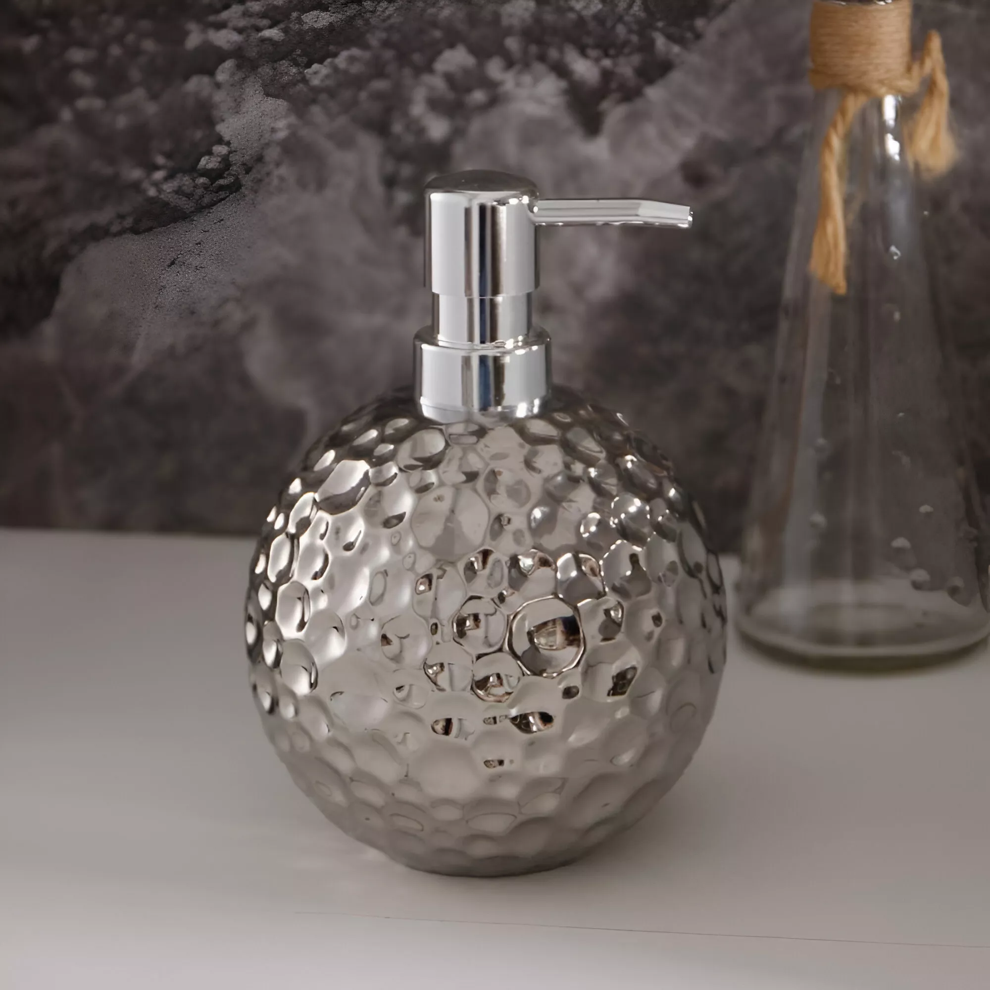 Silver Plated Ceramic Soap Dispenser with Hammered Pattern
