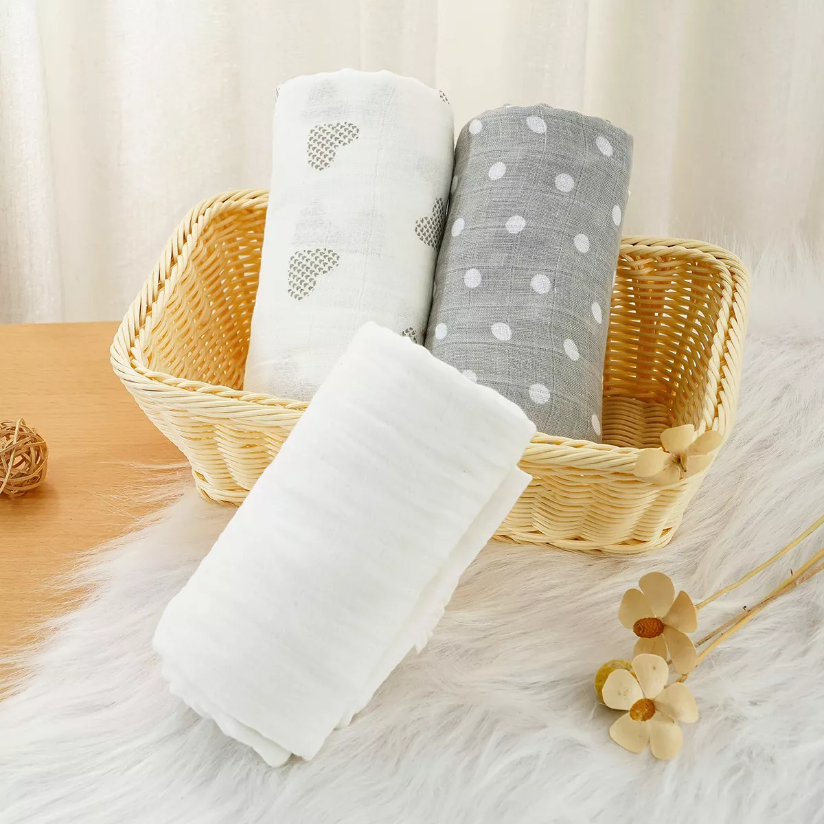 This set is more than just functional—it’s designed to help your baby feel safe and secure. The lightweight cotton muslin is incredibly soft, while the breathable fabric helps regulate your baby’s temperature, keeping them comfortable without overheating. The large size of the swaddle blankets ensures that your baby can stay wrapped up snugly, whether they’re in the crib or being cradled in your arms.
