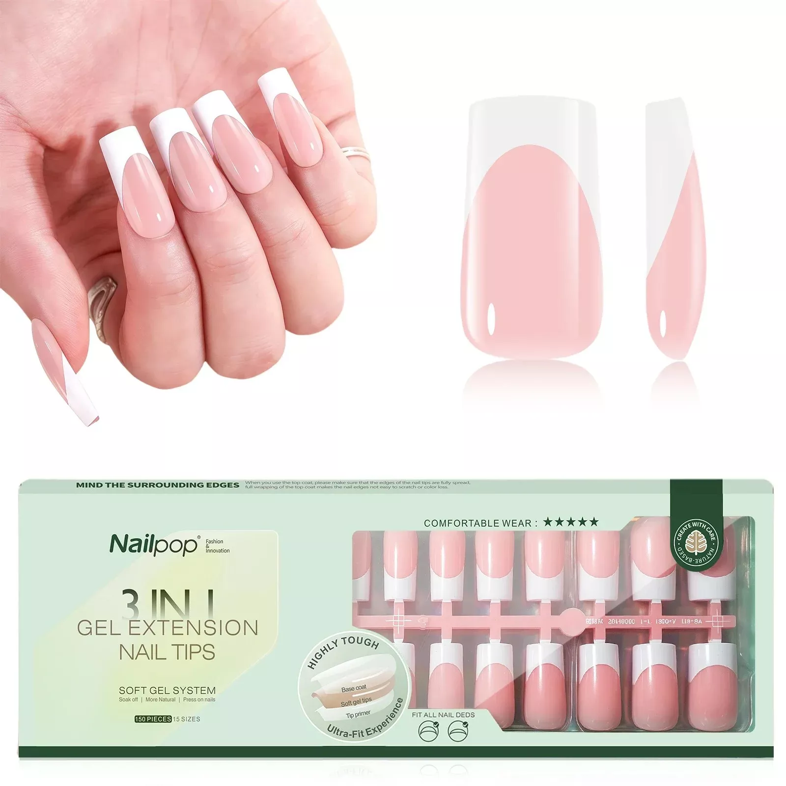 Time-Saving & Easy to Use: The pre-colored, pre-primed, and pre-base design means that you don’t have to worry about applying extra layers of polish, base coat, or primer. Simply apply the press-on nails, add a layer of builder gel and top coat, and you’re done! You can achieve a stunning French tip manicure in 20 minutes or less.