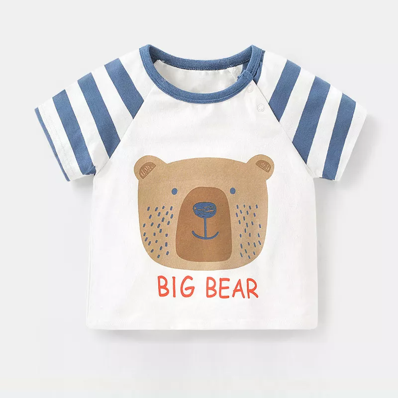 Brighten up your little one’s wardrobe with this Summer Cartoon Animal T-Shirt, a perfect blend of playful style and everyday comfort. Designed for both boys and girls aged 9 months to 4 years, this unisex t-shirt brings cuteness to life with its cheerful bear cartoon print and vibrant striped pattern. Whether your child is heading to the playground, a family picnic, or just exploring at home, this tee adds a splash of fun to any summer day.