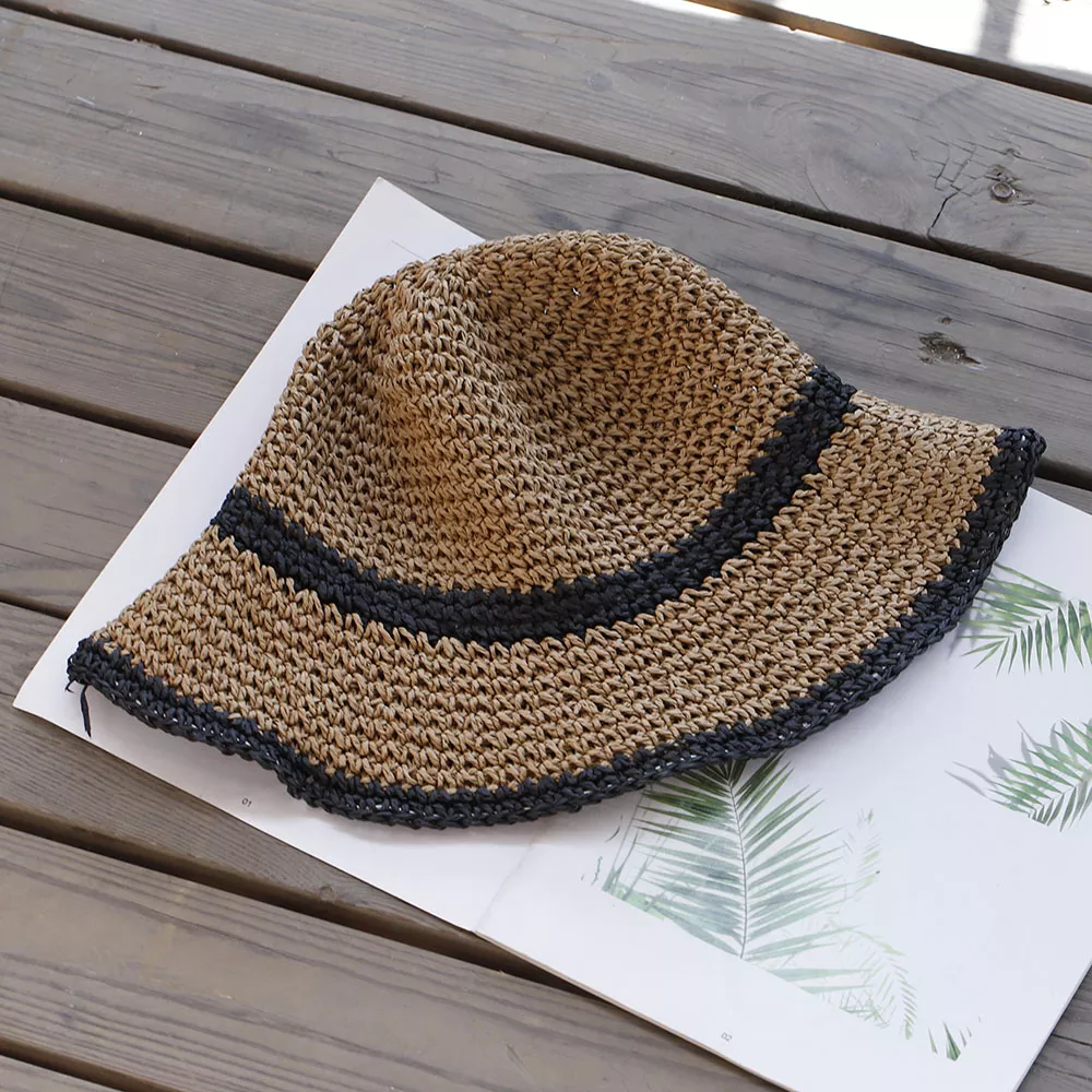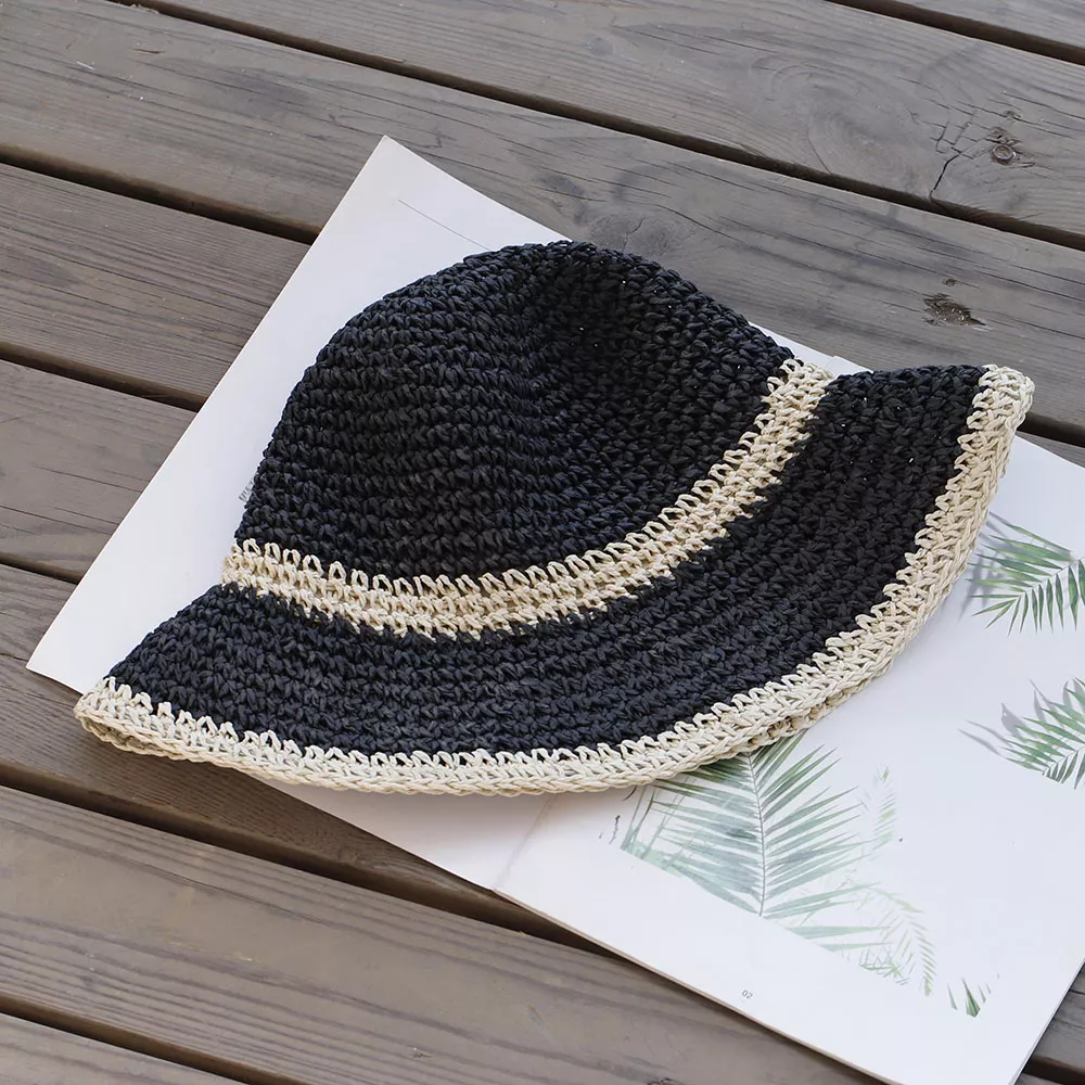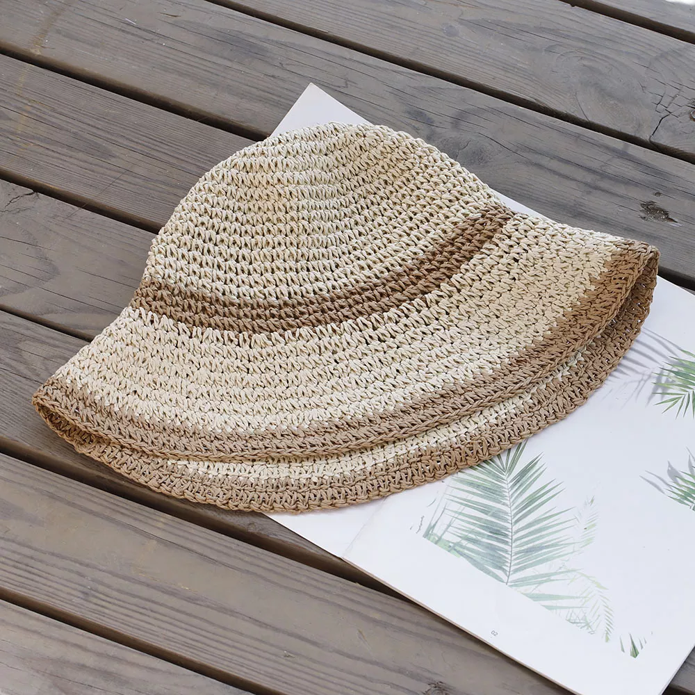 Summer Straw Bucket Hat with Sunscreen Patchwork – Women’s Fishing & Hiking Cap
