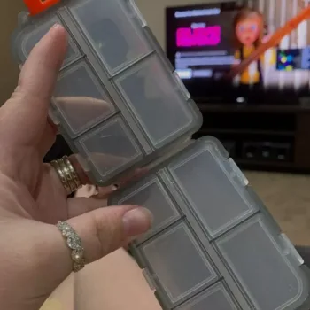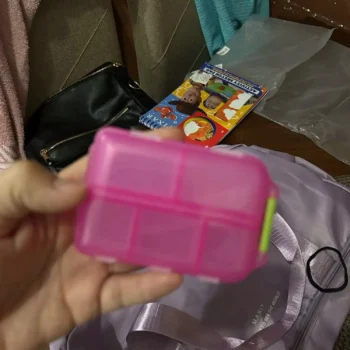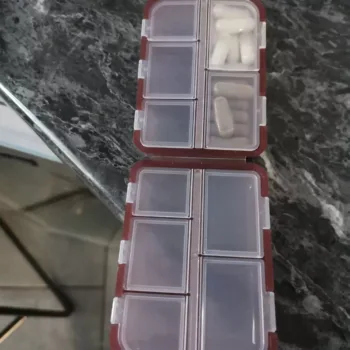 I adore this versatile pill box. Its numerous compartments make it suitable for more than just pills, and its size is just right—not too large to fit comfortably in a purse. I carry mine with me constantly. In addition to holding pills, it serves as a handy storage spot for small items like buttons, ensuring they won't get lost. The flexibility of the compartments allows you to store whatever you need, making it perfect for coordinating with different color schemes or organizing various items.