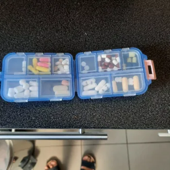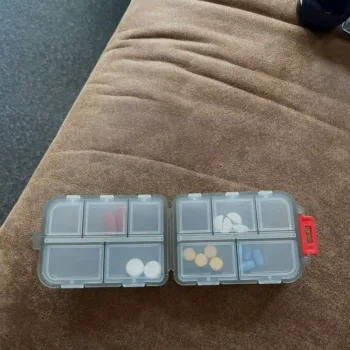 This travel pill organizer is fantastic! It’s just the right size to fit in my bag without being bulky. The compartments are clearly labeled and hold a good amount of pills. The lids snap shut securely, so I don’t have to worry about any spills. It’s also very easy to clean and feels quite durable. I’ve taken it on several trips, and it’s been so convenient for keeping my medications organized. It’s a great product for anyone who travels frequently and needs a reliable way to manage their pills. I’m very satisfied with my purchase.