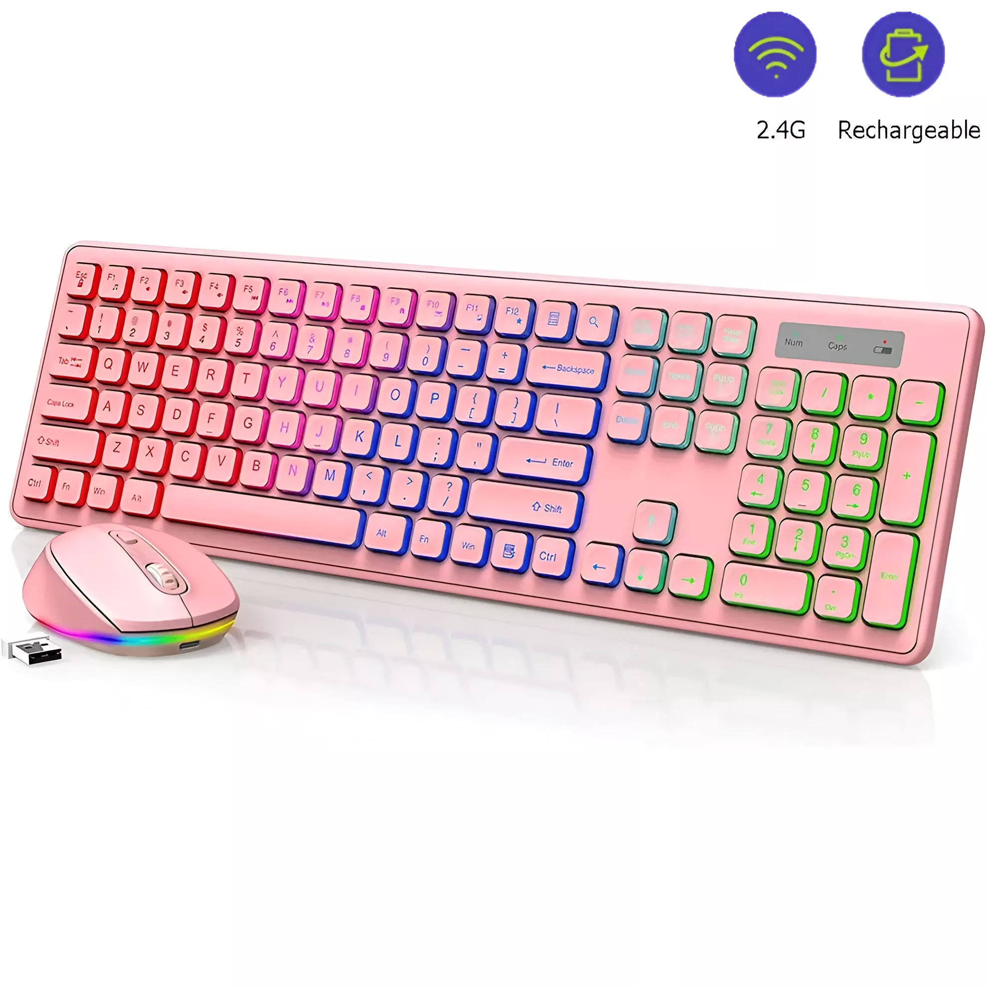 Whether you’re typing up reports, editing photos, or just browsing the web, this wireless combo has you covered. The novelty rainbow RGB lighting brings an eye-catching element, while the silent design lets you work without disturbing others. With a seamless plug-and-play USB receiver and long battery life, it’s made for users who value style, comfort, and efficiency in equal measure.