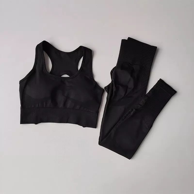 Made from high-quality nylon fabric, this fitness set is ultra-soft, breathable, and quick-drying. The seamless construction ensures a smooth fit that hugs your body, providing the perfect balance of support and flexibility. The high-waisted leggings offer tummy control and a sculpted silhouette, while the sports bra delivers medium support, making it ideal for a variety of workouts.